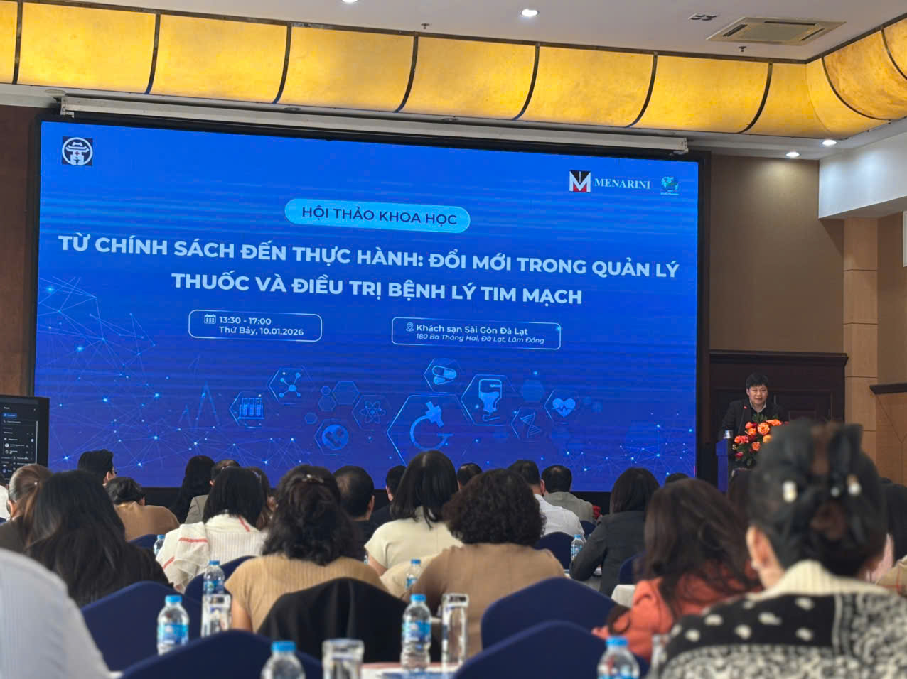 Chiều ngày 10/1/2026, tại Khách sạn Sài Gòn-Đà Lạt, Hội thảo Khoa học với chủ đề “Từ chính sách đến thực hành: Đổi mới trong quản lý thuốc và điều trị bệnh lý tim mạch 2025” được tổ chức bởi Hội dược bệnh viện Hà Nội và công ty Menarini đã diễn ra thành công tốt đẹp. Sự kiện thu hút hơn 200 đại biểu là các y bác sĩ, dược sĩ và nhà quản lý y tế đến từ các bệnh viện trên cả nước.
